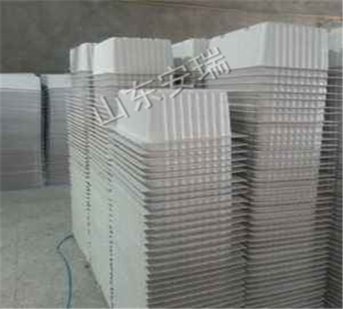 4、吊挂水槽(袋),挂勾位置要对正,相向布置。排勾4—8mm的圆钢,挂勾角度为60±5度,变勾25mm。